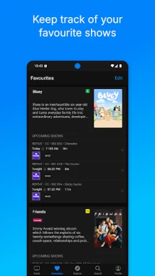 - Keep track of your favourite programs, add favourites to your list, easily check for upcoming episodes