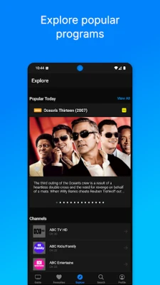 - Browse TV guide by channel or category, view upcoming favourite shows and channel movies